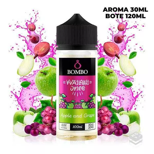 Sumérgete en una explosión de sabor fresco con el Aroma Apple and Grape 30ml de Wailani Juice by Bombo. Este e-liquid ofrece una deliciosa combinación de las mejores manzanas dulces y uvas moradas, creando una mezcla intensa y dulce que captura la esencia misma de la fruta natural. Disfruta de la armoniosa fusión de manzanas dulces y uvas moradas, proporcionando una experiencia de vapeo refrescante y deliciosamente dulce.