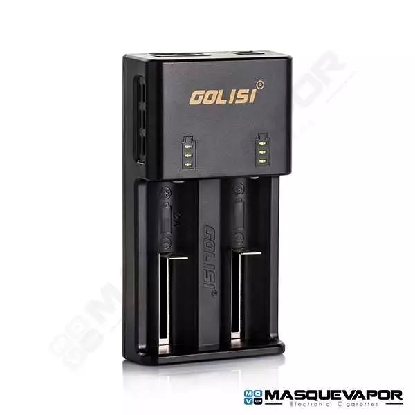 Cargador Golisi O2, un cargador enconómico y muy funcional de 2 bahías que carga baterías 10440,14500,14650,16340,16650,17650,17650,17670,18350,18490,18500,18650,20700,22650,26500,26650