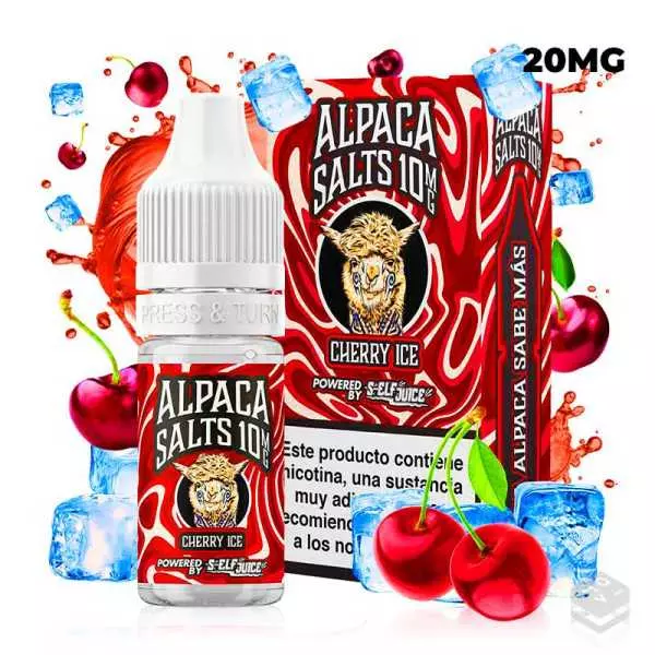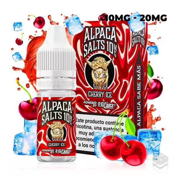 Las Cherry Ice 10ml - Alpaca Salts son e-liquids formulados con sales de nicotina que proporcionan un sabor intenso a cerezas maduras con un toque refrescante de ice, diseñados para ofrecer una experiencia de vapeo satisfactoria y memorable.