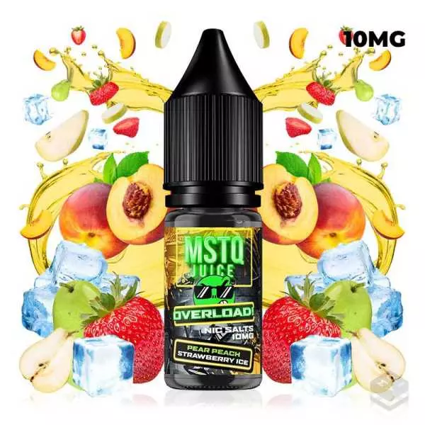 Descubre la combinación perfecta de frescura y sabor frutal con Pear Peach Strawberry Ice de MSTQ Juice Overload Nic Salts. Una opción ideal para quienes buscan una experiencia de vapeo refrescante y frutal que les encantará.