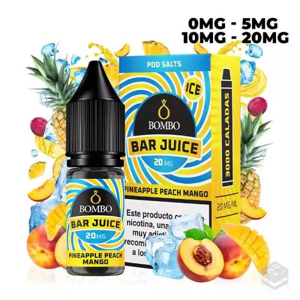 Además, este líquido está especialmente adaptado para su uso en dispositivos tipo pods, lo que garantiza un sabor excepcional y una experiencia de vapeo satisfactoria en este tipo de dispositivos. Así que si estás buscando un líquido de vapeo que te transporte a un paraíso tropical con cada calada, el Pineapple Peach Mango Ice de Bar Juice Nic Salts by Bombo es la elección perfecta.