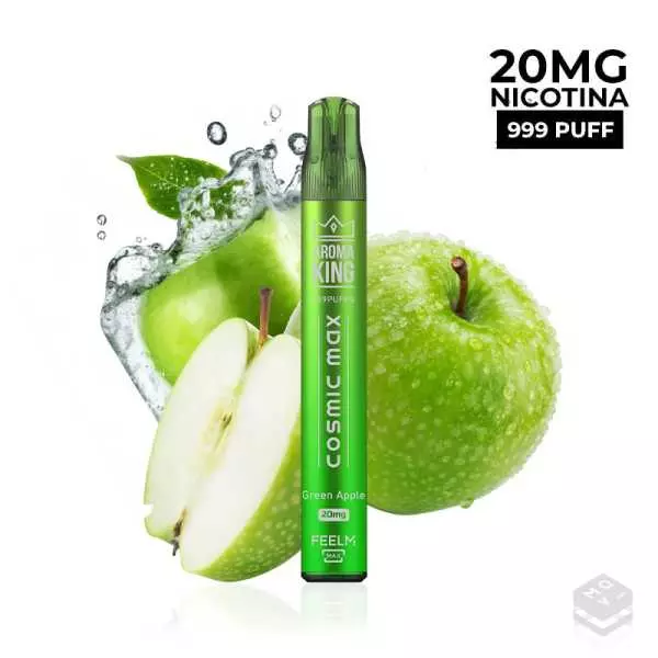 El Vaper Desechable Aroma King Cosmic Max Green Apple es un dispositivo electrónico diseñado para ofrecer una experiencia de vapeo única con el refrescante sabor de la manzana verde. Su diseño moderno y ergonómico garantiza comodidad y facilidad de uso para cualquier usuario.